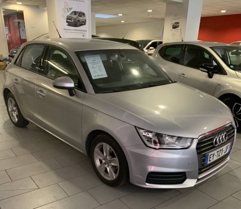 Audi A1 Sportback 1.4 TDI 90 Business Line de 74 000 kilomètres de juin 2018 de couleur gris aluminium.